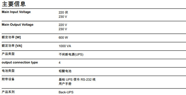 APC Back UPS 1000VA,适用于中国市场 Back-UPS备用电池可为您的家庭或企业中的无线网络、电脑、游戏机和其它电子产品提供有保障的电源和浪涌保护。这些机型可在断电和不安全的电压波动期间提供备用电池,以及针对破坏性的浪涌和尖峰提供保护