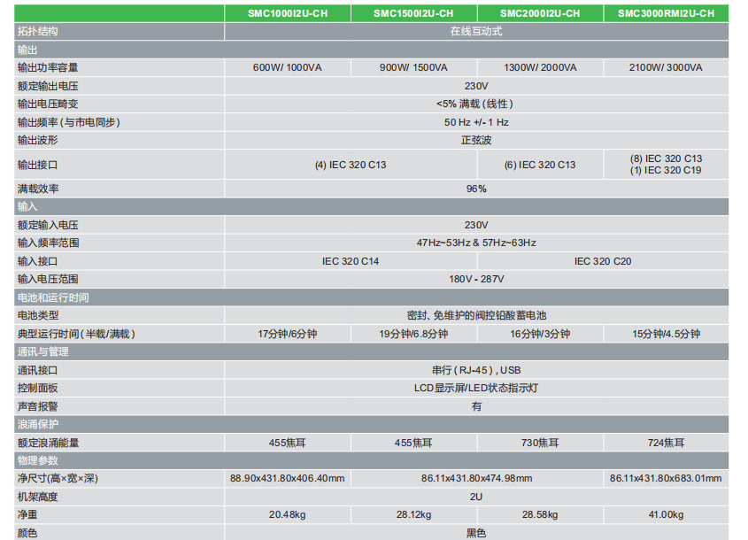 Smart-UPS SMC系列机架式2000VA Smart-UPS™得到各地数以百万计的IT专业人员的信赖,通过可靠、高效地提供可靠的网络级电源来保护设备和关键数据免于遭受成本高昂的中断。该系列UPS有多种形式和类型可用(入门级,标准型和延长运行时间类型),对于几乎每一种应用和预算来说总有一种。